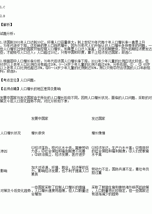 2.图2中反应该国2011年的人口年龄结构的序号是