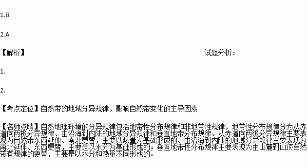 A. 热量 B. 光照 C. 降水 D. 坡向