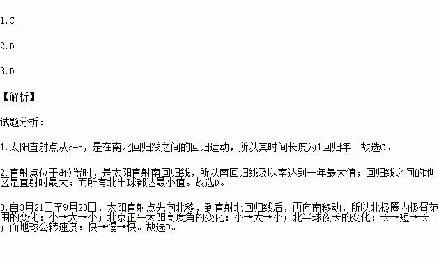 下图为太阳直射点移动示意图,读图回答下列问题。