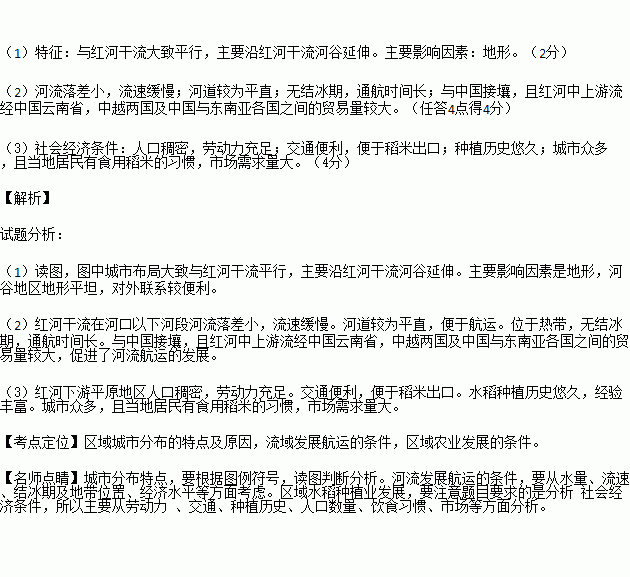 (3)红河下游平原地区是开发已久的水稻种植区,并分析其形成和发展的社会经济条件。