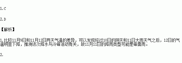 下图示意某年11月上海市连续四天的天气状况。读图,回答各题。