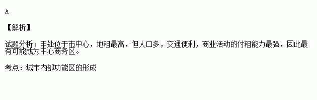 读“某城市地租水平与距市中心距离关系示意图”,图中甲、乙、丙、丁四地最有可能代表中心商务区的是( )