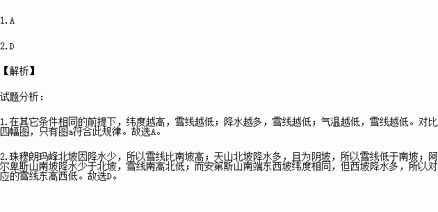 A.珠穆朗玛峰北坡纬度比南坡高,对应的雪线高度是北坡低于南坡