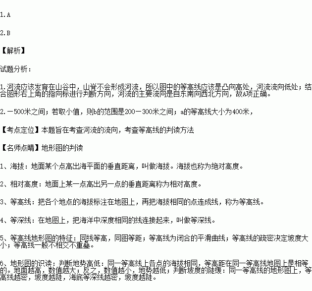 2.若图中等高距为100m,则a和b的数值可能是 ( )