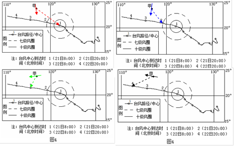 ¡¾Ð¡Ìâ3¡¿Ì¨·çÖÐÐÄλÓÚλÖÃ1ʱ£¬ÀëÖи½½ü×î½üµÄÊǸßÐÛ£¬·çÁ¦×î´ó£¬C¶Ô¡£