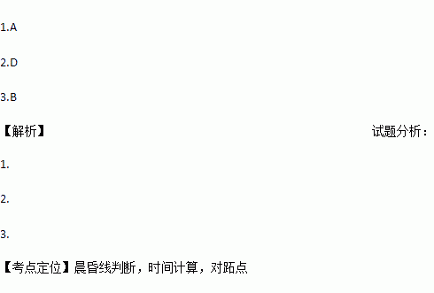 下表为三地连续两日日出与日落时刻(北京时间)。据此,回答下列各题。