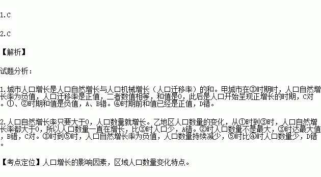 1.甲城市人口开始呈现正增长的时期是