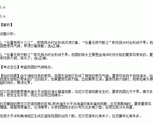 1.´ËÑèÓï·´Ó³ÁËÎÒ¹úµÄÆøºòÌØµãÊÇ£¨ £©