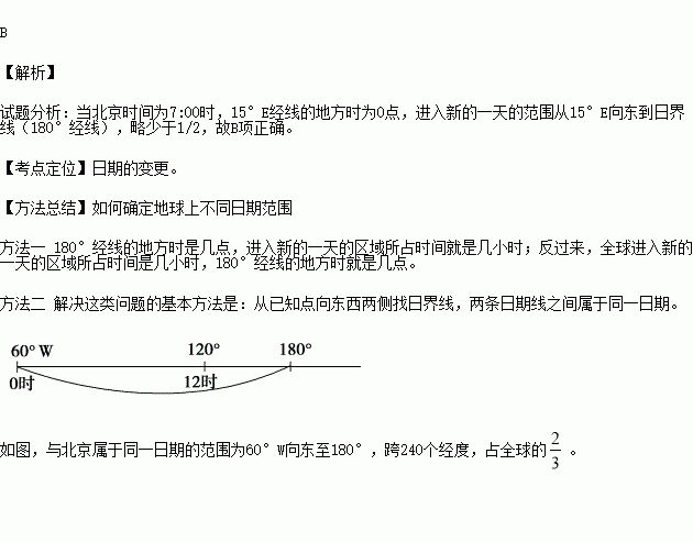 某日早晨,当北京时间是7:00,北京天安门广场举行隆重的升旗仪式,此时,地球上已经进入新的一天的地区( )