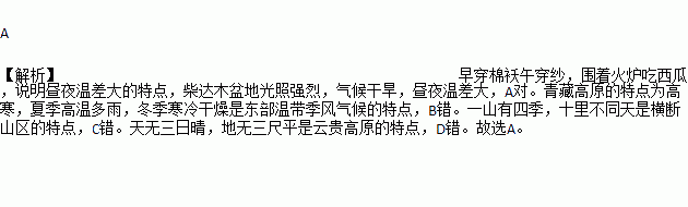 A. 早穿棉袄午穿纱,围着火炉吃西瓜——柴达木盆地