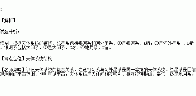 C.③太阳系 D.④河外星系
