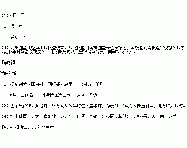 (4)此时,全球各地昼夜长短的分布规律是________________________________________。