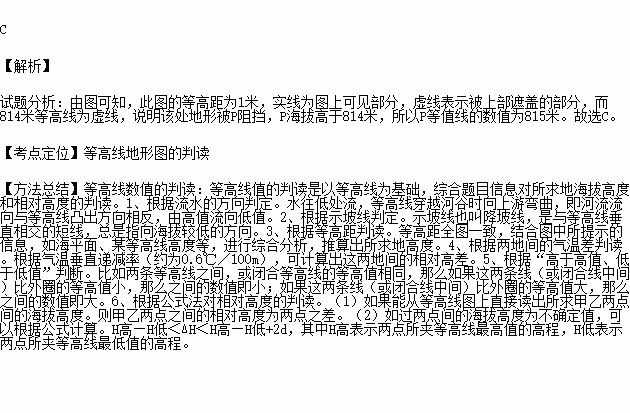 下图为我国某处风蚀蘑菇等高线图(实线为图上可见部分,虚线表示被上部遮盖的部分)。图中P等值线的数值为