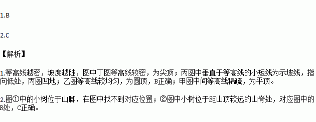 2.下列①②两图为实景地貌,③④两图为对应实景地貌的等高线图。①②两图中的小树,在等高线图上的位置是( )