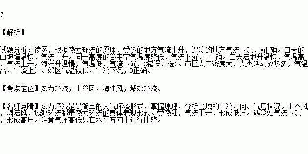 下图表示的热力环流中,错误的是( )