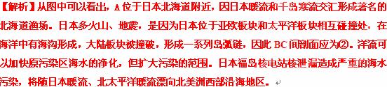 (1)日本多地震的原因是 。BC的剖面最接近图中的 (①、②、③)。