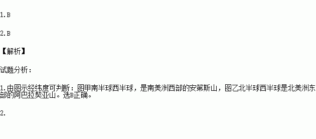 1.图中甲、乙两山脉分别是( )