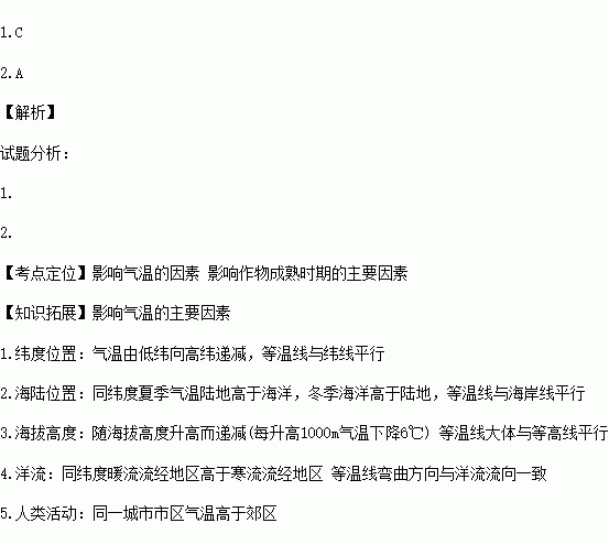 2.日喀则地区的青稞比我国东部平原地区的麦类要晚两个月左右成熟,最主要的原因是( )