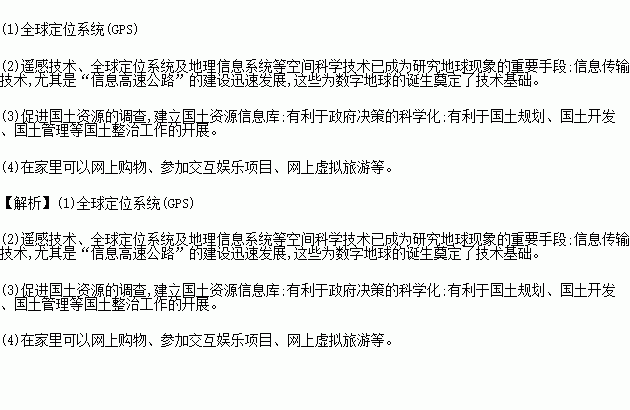 (4)列举两例说明数字地球与百姓生活的密切关系。