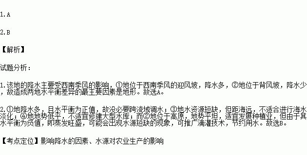 1.造成图中①②两地水平衡差异的最主要因素是( )