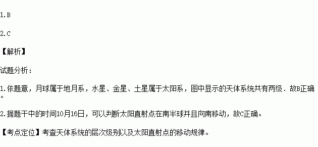 2.当“三星伴月”出现时,太阳直射点的位置和移动方向分别是