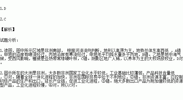 2.关于图示所在的大洲的工业化,叙述正确的是