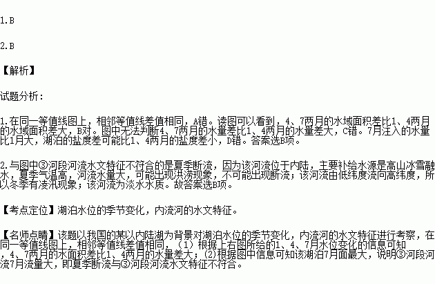 ͼ¼×ÊÇijָÃûºþ²´£¬Í¼ÒÒ±íʾÆäˮλ±ä»¯Çé¿ö¡£¶Áͼ»Ø´ðÏÂÁи÷Ìâ¡£