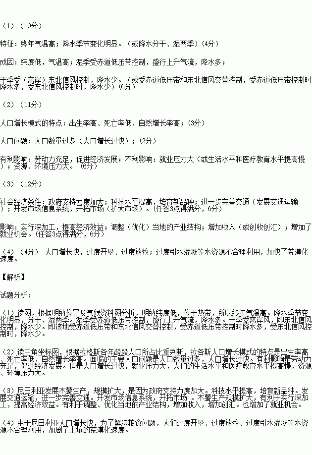 (1)说出明纳的气候特征并分析成因。(10分)