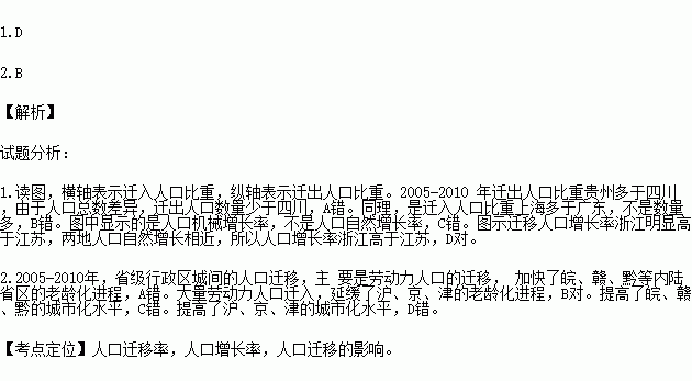 下图表示我国部分省级行政区域2005---2010年间迁移人口比重。迁移人口以青壮年为主.读图并结合相关知识,完成下列各题.