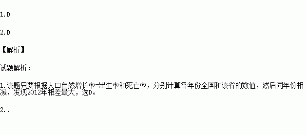 1.该省人口自然增长率与全国同期相比差异最大的年份是