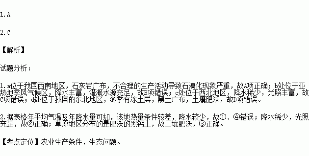 C.c处,降水丰沛,光热条件不足