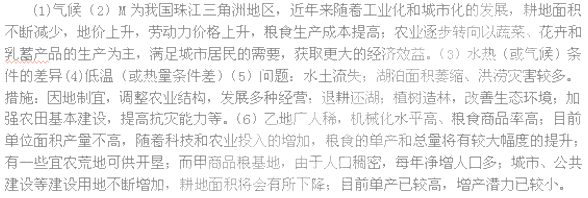 (2)图中M地区农业生产潜力高,但近年来已不再是我国的商品粮基地,为什么? (6分)