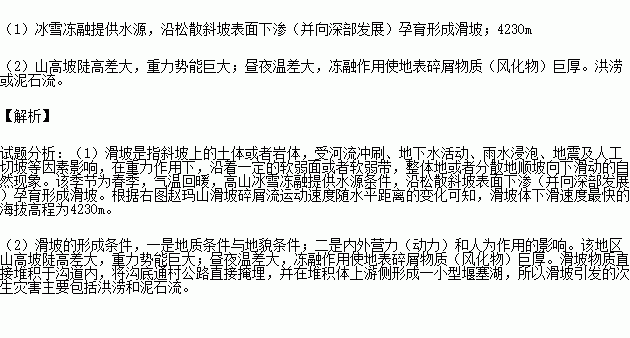 (1)说出此次山体滑坡的直接诱因并指出滑坡体下滑速度最快的海拔高程。
