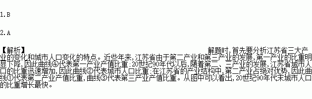 1.图中表示江苏省城市人口比重变化的曲线是( )