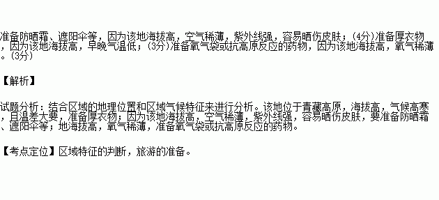 你认为从气候角度考虑,去门源观赏油菜花应准备哪些物品并说明理由。