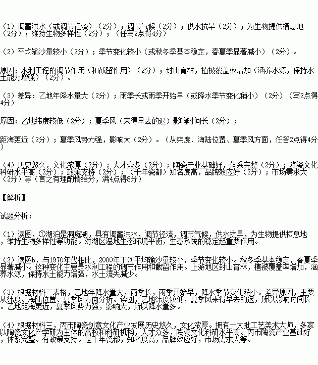 (1)说出图a中①湖泊对所在地区的重要生态作用(4分)。