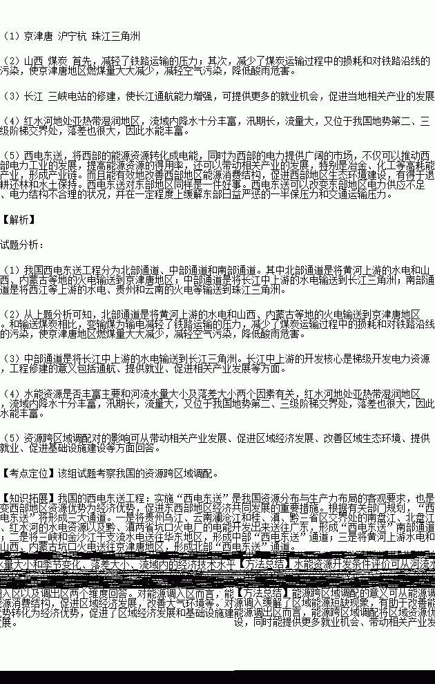 (5)西电东送对东西部地区发展各有什么益处?(8分)