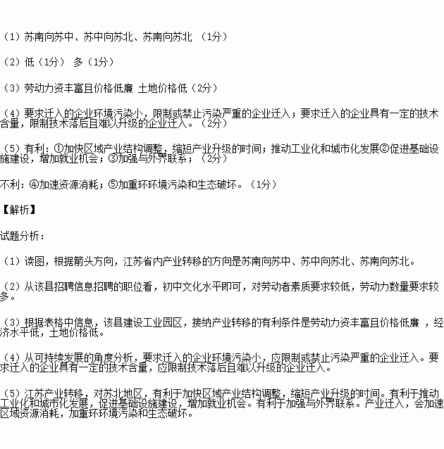 £¨1£©½ËÕÊ¡ÄÚ²úÒµ×ªÒÆµÄ·½ÏòÊÇ________________________________________¡££¨1·Ö£©
