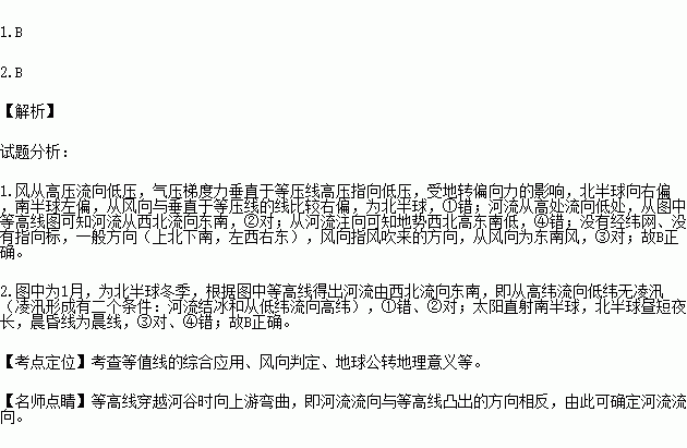 下图是中纬度某地某日河流、晨昏线、风向、等值线的组合图。读图回答各题。