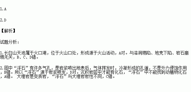 下图为王娟同学拍摄的我国长白山天池自然风光及天池周边“浮石”图片,据此完成下列各题。
