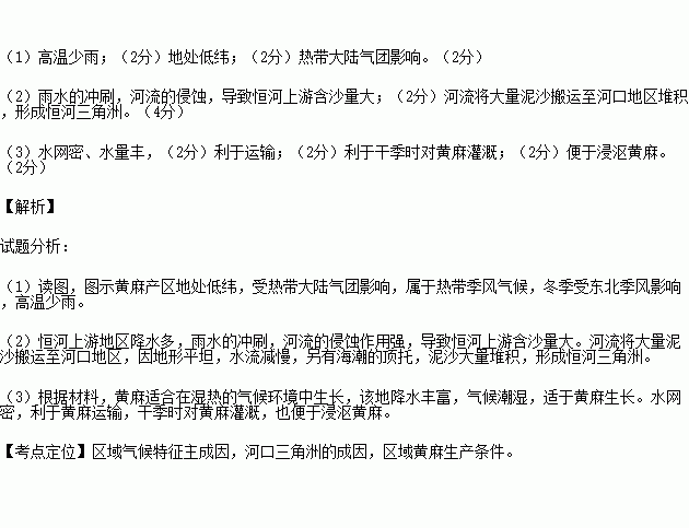 (3)说明该地区有利于黄麻生产的水文条件。(8分)