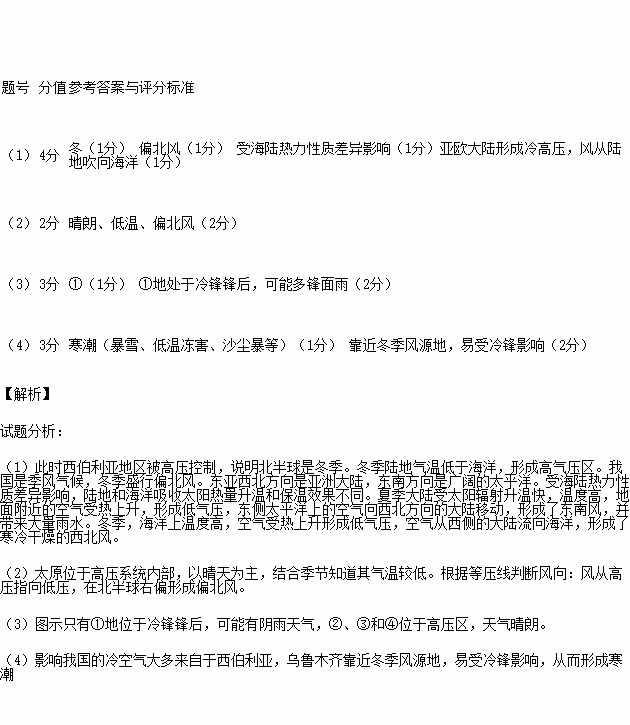 (1)此时北半球为 季。我国大部分地区盛行 风,其主要成因是 。