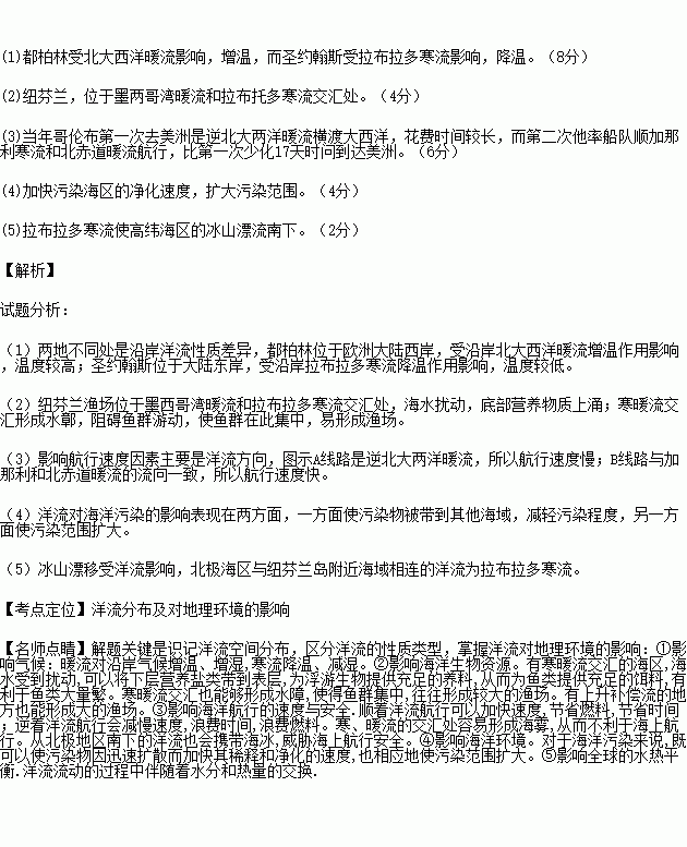 (1)爱尔兰的都柏林和纽芬兰的圣约翰斯所处的纬度差不多,但1月份都柏林的气温为8℃时,圣约翰斯的气温通常在0℃以下,这是为什么?(8分)