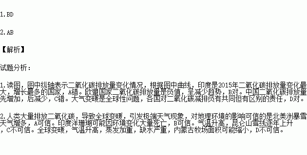 2.人类大量排放二氧化碳对地理环境的影响可信的是