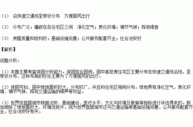 (1) 高密度住宅区分布的特点是________,其好处是__________________。