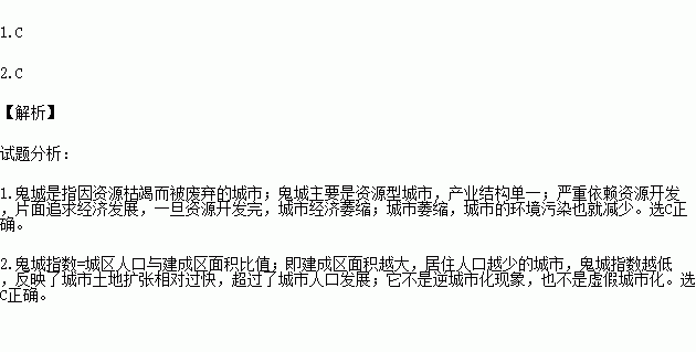 鬼城是指因资源枯竭而被废弃的城市, 属于地理学名词。在我国,随着城市化的推进,出现了城区人口与建成区面积比值(鬼城指数)低于0.5的新城、新区,这些新城、新区居住人口少,也被形象地称为“鬼城”。下图为中国大陆“鬼城”前50名分布图。据此完成下题。