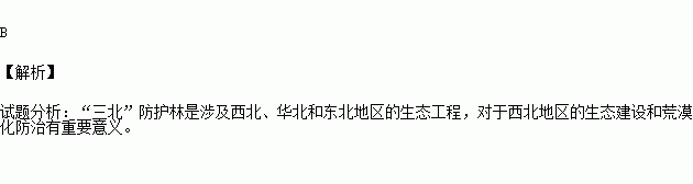 A.长江中上游水土保持林 B.“三北”防护林