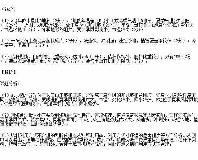 (1)比较图中A地与B地的气候特征,并简析原因。(10分)
