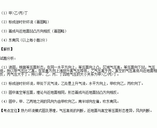 (1)甲、乙、丙、丁四地气压的大小关系为_________