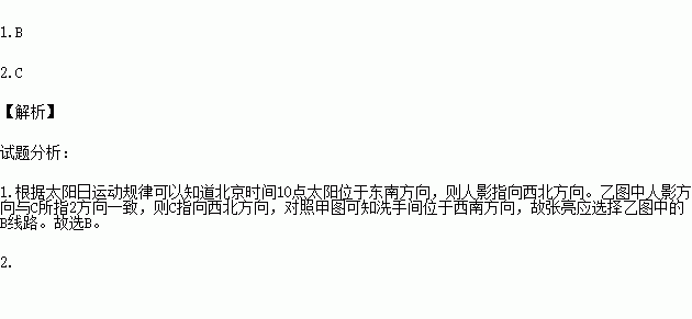 1.¾ÝÍ¼ÍÆ²âÕÅÁÁÈ¥Íù¼×ͼÖÐÏ´ÊÖ¼äµÄ×î½ü·ÏßӦѡÔñÒÒͼÖеģ¨ £©